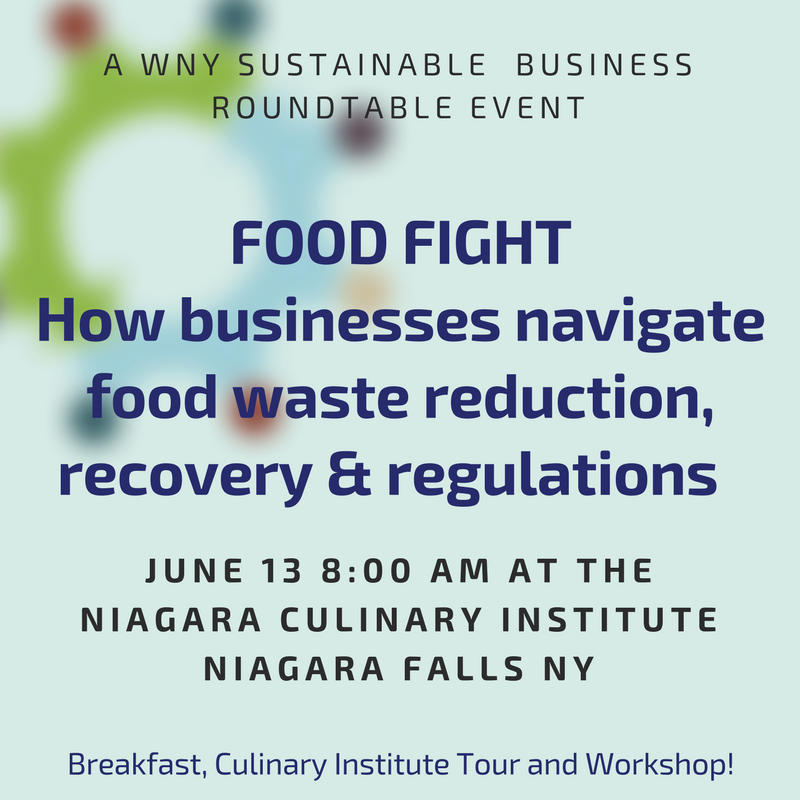 Costs, regulations and customer expectations are changing the ways businesses deal with food waste. The upcoming WNY Sustainable Business Roundtable workshop is for businesses that create or divert food waste, and anybody else interested in learning more about this growing business segment. It will be led by the Sustainable Food Program experts at NYS Pollution Prevention Institute and held in a great new space at the Niagara Culinary Institute. It is free to attend, thanks to the generous underwriting of our sponsors.